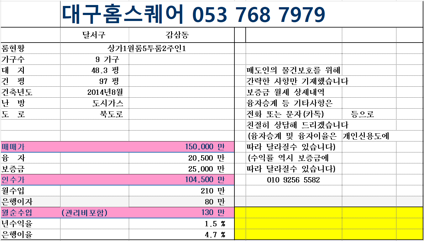 거래종류,희망금액,구조형태,연락처 등을 적어주시면